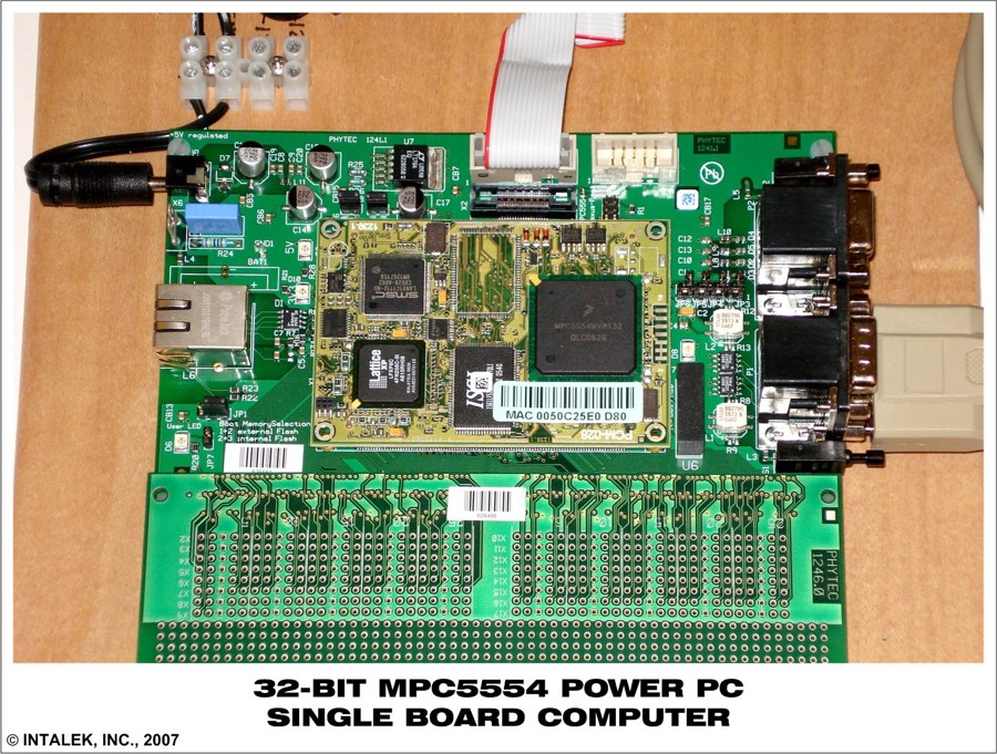 This board interfaces expands all the GPIO and special function signals coming to and from the MPC5554 SBC. Various sensors, switches, relays, indicators, displays, drivers, etc can be placed on this EURO-card dimensions (100 x 160 mm) board.