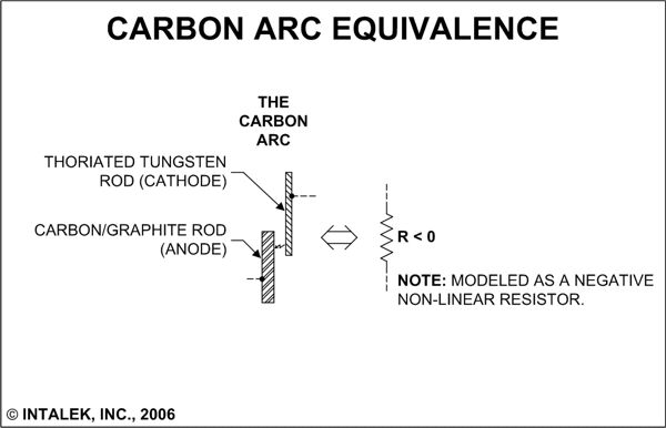 Figure 5. The Carbon Arc modeled as a NEGATIVE non-linear resistor.