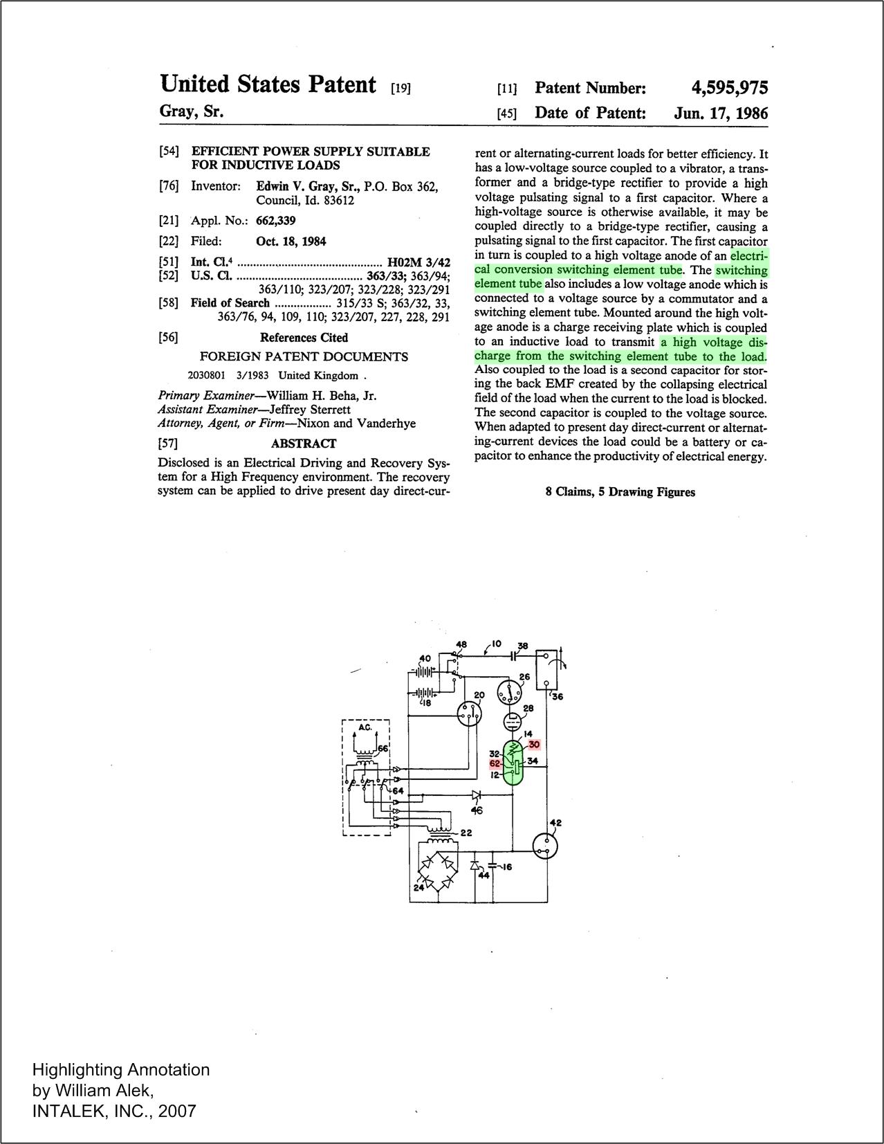 Figure 3. E. V. Gray's patent 4,661,747 annotated.