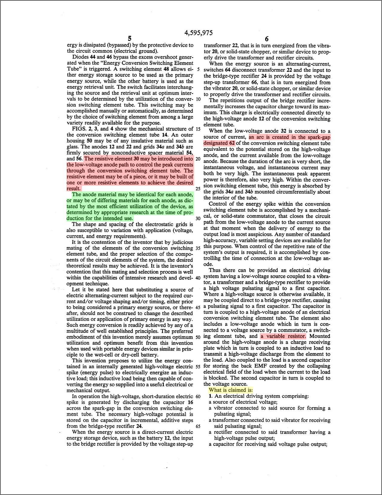 Based upon my own research into spark gaps, I highlighted what I think are very important points above that offer evidence of excess electrical energy produced in Gray's devices. Shown above, the subsystem, which was invented by Gray, creates these quasiparticles in a device he called an "electrical conversion switching element tube" (item 14). From what I gathered about his patent, Gray acknowledges the increase in excess energy, but he himself isn't certain as to its origin. From his perspective, the proper combination of components within the "electrical conversion switching element tube" makes it work. So, what is this "critical component" that makes the Gray device produce excess energy? Well, according to my research and experimental evidence with Spark Gaps, the excess energy can only come from item 30 in his patent. Gray refers to this component as a resistive device and later refers to it as a variable resistor. The electrical schematic on the Abstract page and Sheet 1 of 2 both show the component as a variable resistor. The diagram on Sheet 2 of 2 shows this "resistor element" (item 30) as a cylinder of material. He doesn't specifically mention what its made of, but some power resistors of the day used Carbon. A short "round" of Carbon Graphite would suffice in this case.