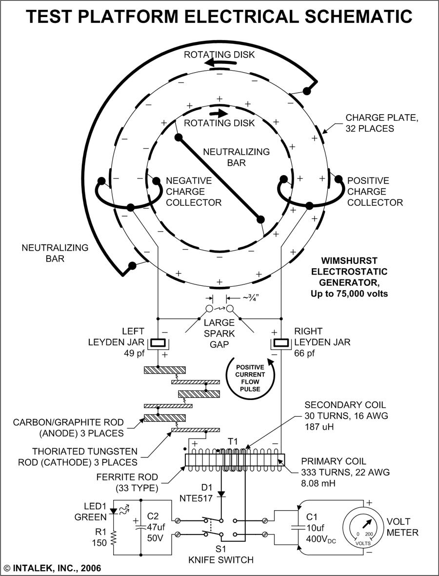 Figure 18. Wimshurst Generator test platform electrical schematic using 780 turn primary.
