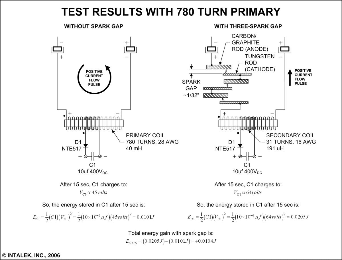 Figure 20. Test results using 780 turn primary and three spark gaps.