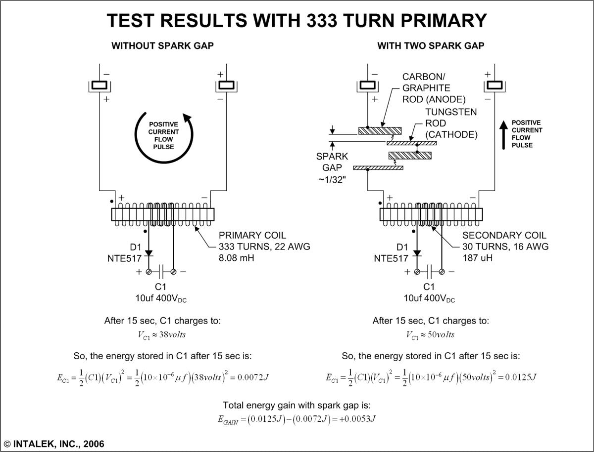 Figure 7. Test results using 333 turn primary and two spark gaps.