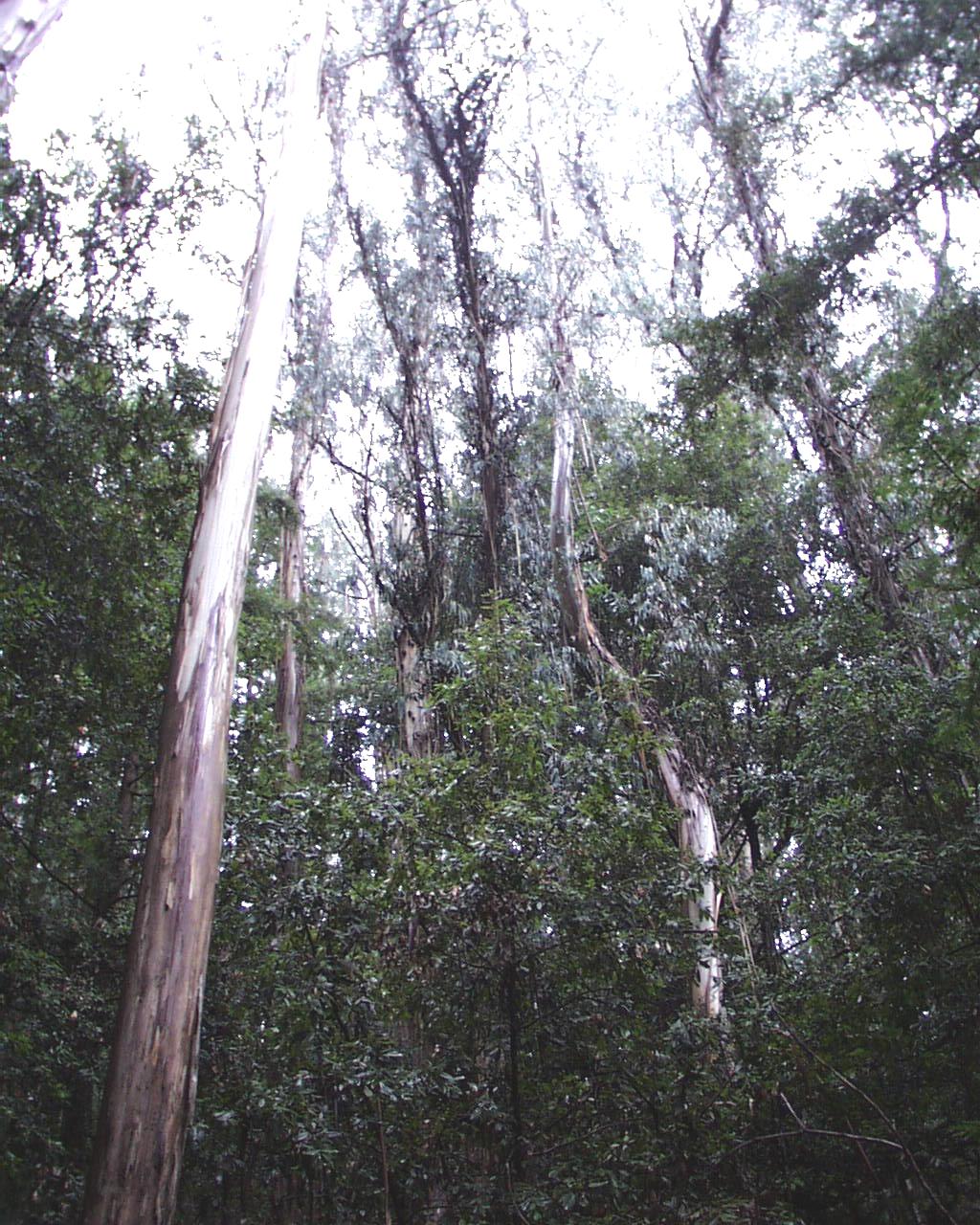 very interesting effect on the Eucalyptus trees. Their trunks are twisted and their tops