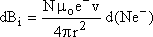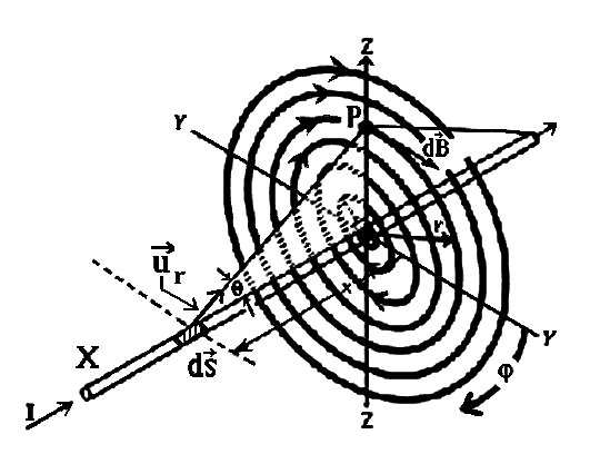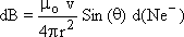 1After the initial transient, when the flow of electron current is stabilized in the wire, no more energy is directly required to maintain that induced magnetic field. That can be verified in the case of an electron current inside a conductor, since it is well known that the current (and therefore the magnetic field) remains naturally constant in time, if the electric resistivity of the conductor is zero, as in the case of a superconductor. In the case of a conductor with a non-zero electrical resistivity, the energy required to maintain the current, is totally used to heat up the wire. However, if the electron current is formed by a free electron beam, traveling in vacuum, it is even more obvious that the current of free electrons maintains a constant velocity inside the electron beam, due to momentum conservation. Since the Biot-Savart equation 1 is most suitable to calculate the magnetic field, with any electron current, we can consider either a current generated by the flow of free electrons in vacuum (as for the electron beam drifting inside a cathode ray tube), or the constant electron current inside a wire. 2 - Magnetic Field Produced by Single Moving Electrons. Using the Biot-Savart law, let us now calculate the magnetic field We know that the electric current I, is defined as defined as a number of individual electrical charges (e-) passing through a point per second. Since the electric charge is quantized, in the case of a single electron it is impossible to calculate an infinitesimal variation of charge of one single electron. Electrons cannot produce a continuous flow of electric charge. This is particularly obvious when the number of electrons is close to unity. In one unit of electron current, (one ampere) we have N(1 amp)@6.25 x 1018 electrons. The electron current I, is defined as the passage of a charge Q coulombs of electric charge per second. We have: The scalar form of the Biot-Savart equation is: Quantization of Charges - Equation 6 gives the component of the magnetic field B in direction q, produced by one electric charge composed of N electrons distributed along the vector It is interesting to note that H. Poincaré (2) in 1906, was the first to recognize that another force, called the “Poincaré stress” has to be present to prevent the electric charge of an electron from flying apart due to the Coulomb repulsion. Since we now consider the magnetic field produced by one single quantized electron, additional transformations are also required. For example, the Biot-Savart equation defines the magnetic field