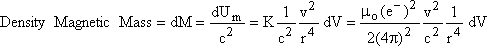 226 - The Magnetic Mass Versus the Relativistic Mass. Let us compare the increase of magnetic mass calculated above in equation 17, with the increase of electron mass, using relativity theory as given in equation 22. In fact, we are testing whether the relativistic mass is the same thing as the magnetic mass. Equations 17 and 22 give: