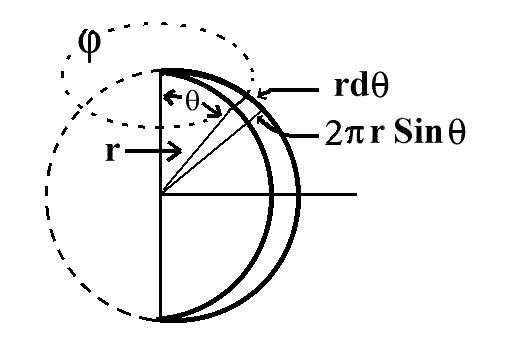 114 - Total Mass of Magnetic Energy in One Single Moving Electron. Equation 10 gives the total energy of the induced magnetic field around one moving electron in volume dV. Let us calculate the total mass M of that magnetic field surrounding the moving electron, using the Biot-Savart’s equation. We know that the constant of proportionality between energy and mass is c2 (in the relationship E=mc2). Since equation 10 gives the energy per unit volume dV, it must be divided by c2 in order to get the mass of the magnetic field. We have: On figure 2, we see that the differential surface element of the surface of a sphere, at a distance r, is equal to a thin square, having sides respectively equal to r dq along meridians, multiplied by the element of longitude j of the circle 2prSin(q). ---