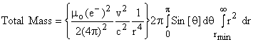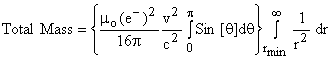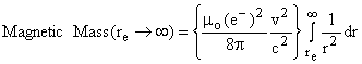 15Magnetic fields are well measured experimentally at any large distances, but such a measurement is no longer possible directly at an infinitesimal distance, very near the center of the electron. At r=0, equation 15 shows that it would require an infinite amount of energy to generate magnetic fields right down to the center of the electron. Therefore, the total electron energy of 511. KeV, gives the information of how close to the geometrical center, the field can exist. As a result, a hollow structure of electric and magnetic fields of the electron is absolutely necessary, due to the finite energy of the electron (511 Kev). More explanation is given below in section 7. There is a minimum radius expected due to the fact that the electron energy is finite (511 Kev), which is called the classical electron radius (re) (3). There cannot exist any electromagnetic energy within the classical electron radius (re), because the velocity of that empty part of the electron (hollow cavity) cannot induce a magnetic field as calculated by the Biot-Savart equation. Let us integrate the magnetic energy from the well-known (hollow) classical electron radius re up to infinity, where an electric field can exist. From equation 15, we have: