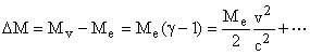 175 - The “Relativistic Increase of Mass”. We wish to compare the magnetic mass of a moving electron given in equation 17, with the kinetic mass (which is the increase of the so-called “relativistic mass”) of the same electron. When we apply the principle of mass-energy conservation, we have found (4), that the mass of a moving particle in motion Mv is given by the same relationship as in Einstein’s relativity. The mass of a moving particle is given by the relationship